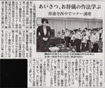 善通寺市立西中学校で行った「職場体験学習前のマナー研修」の様子が四国新聞に掲載されました。