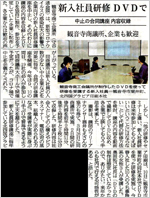 観音寺商工会議所で新入社員研修のDVDを作成し、その話題が四国新聞に掲載されました。酒井講師が撮影に協力しました。